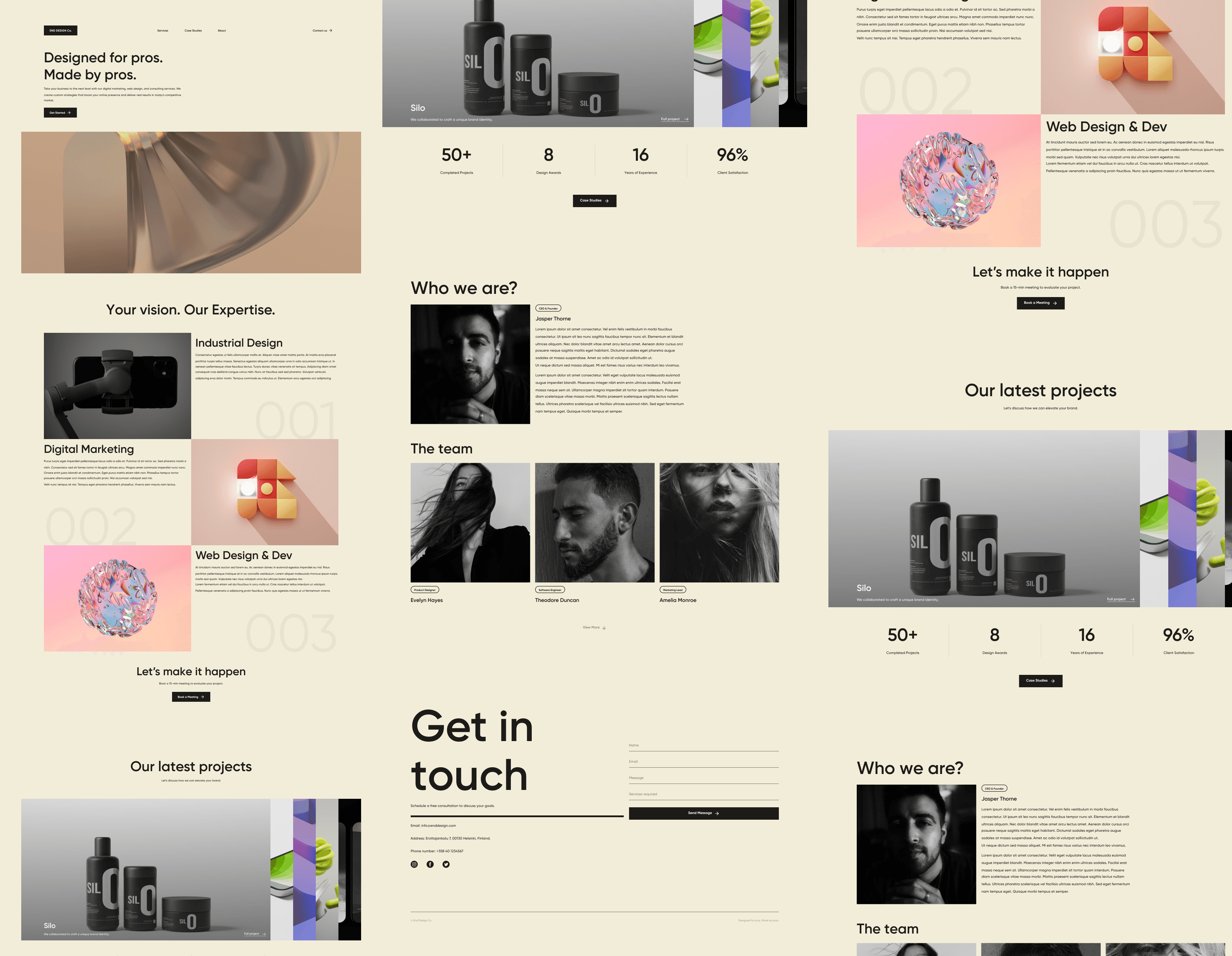 End Design Co. was a multidisciplinary studio based in Helsinki focused on merging industrial design, digital marketing, and web development under a unified creative direction. The objective was to create a brand that projected precision, innovation, and user-friendliness across all service fronts.